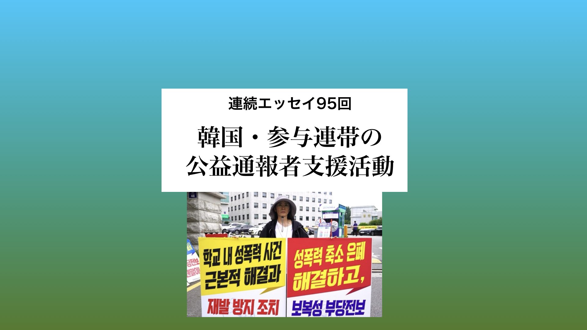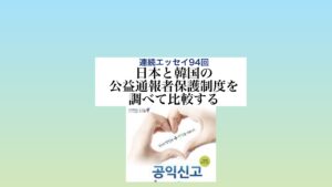 今回のエッセイでは、前回(第94回)に続いて、3月27日に行われるAsu-netのつどいのテーマである公益通報者保護をめぐる問題を取り上げます。今回は、前回調べた韓国で関連制度改善に大きな役割を果たしてきた市民団体による通報者支援活動に焦点を当てました。