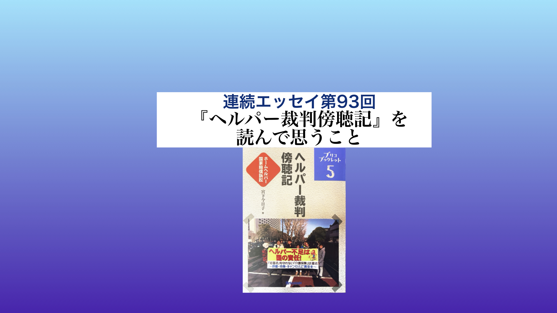 『ヘルパー裁判傍聴記― ホームヘルパー国賠訴訟 ―』という本が出版されました。フリーライターで介護士として訪問ヘルプを経験された宮下今日子さんが著者です。