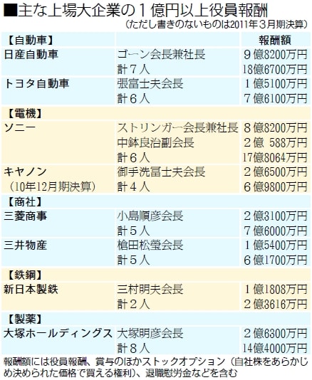 上場企業の役員報酬は10年3月期決算から1億円以上に限って有価証券報告書での開示が義務づけられました。