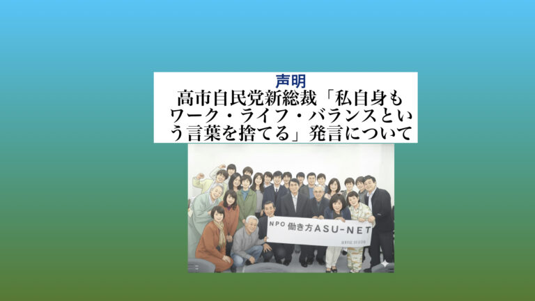 【声明】高市自民党新総裁「私自身もワーク・ライフ・バランスという言葉を捨てる」発言について